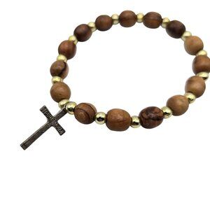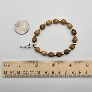 Wooden Beaded Rosary Religious Cross Wrist Bracelet Jerusalem Unisex Catholic