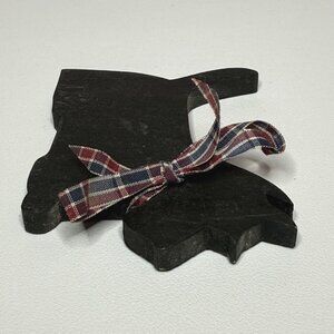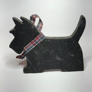 Wooden Black Scottie Dog Decor Vintage Shelf Sitter Red Tartan Ribbon