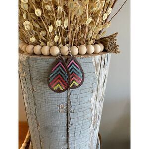 Wooden Boho Earrings Chevron Rainbow Pattern Lightweight Boho Casual Trendy