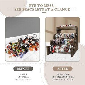 🧿【Organize More than 100 Bracelets and...(You Decide)】- If you have more than 100 bracelets to display, this 3-tier jewelry organizer stand will be a good home for them. If not, it’s also a great organizer for bangles, watches, hair ties, scrunchies, hair bands, necklaces...anything that fits