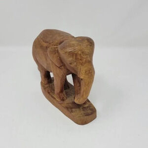 Wooden Brown Carved Elephant Boho Decorative Tabletop Figurine