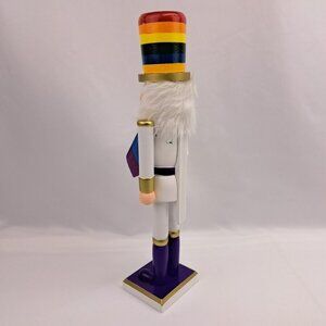 Celebrate the festive season with a touch of pride with this medium-sized, 15-inch tall Wooden Christmas Nutcracker. Decked out in a vibrant rainbow pattern, this Nutcracker is a symbol of diversity and a striking addition to your holiday decor. The wooden construction ensures durability, and the multicolored design brings a bright, festive vibe to any space.