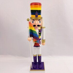 Wooden Christmas Gay And Pride Themed Flag 15 Inch Tall Nutcraker