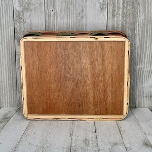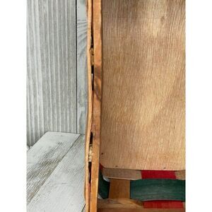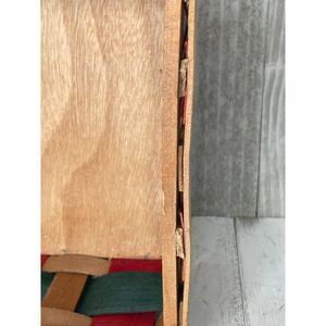 Red, Green, & Natural Stained Wooden Basket with Stars.