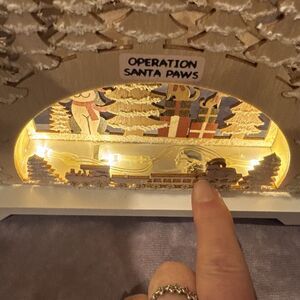 Wooden Christmas Village Scene Operation Santa Paws Lighted Tabletop Decor