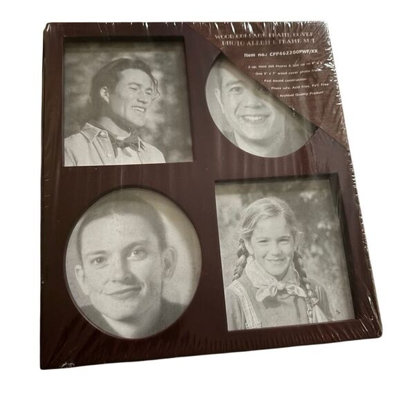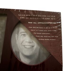Wooden Collage Frame Cover Photo Album & Frame Set. Holds 200 photos up to size 4x6. One 5x7 wood cover frame. New in cellophane.