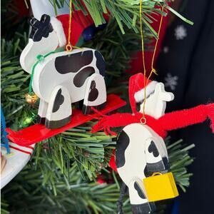 Wooden Cow Ornaments Skiing Cow and Shopper Cow Tree Ornaments