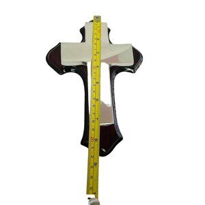 Wooden Cross Wall Mount with Cross Silver Plated 6.5" x 4 1/2"