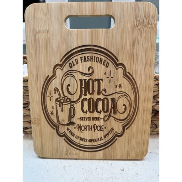Wooden Cutting Board Sign Decor Handmade Hot Cocoa Winter Theme New