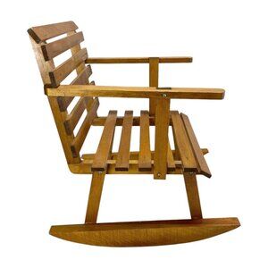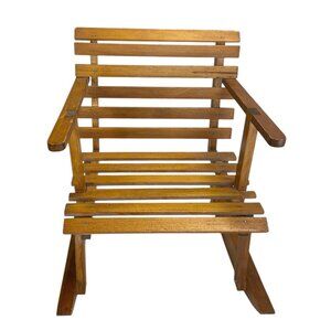 Bring rustic charm to your nursery or collectible display with this Handcrafted Wooden Doll Bear Rocking Chair. Measuring 10.5" L x 11.5" W x 13" H, this miniature rocking chair features a classic slatted design with a warm, natural wood finish that complements any country farmhouse or vintage-inspired decor.