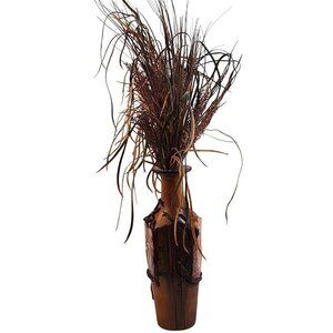 Wooden Fence Post Vase With Fox Design & Faux Grass Grain Arrangement 28" tall W