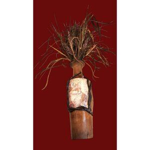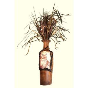 This handcrafted wooden vase features a beautifully detailed fox design, accompanied by a faux grass arrangement. Ideal for adding a rustic touch to home decor, it blends nature-inspired artistry with practical elegance. The combination of wood and faux elements creates a visually captivating centerpiece. Perfect for rustic decor.