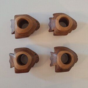 Wooden Fish Napkin Rings India Carved Eyes Faces Nautical Sea Beach Shore Island