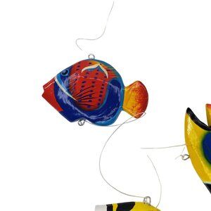 wooden fish decor, nautical wall art, hand-painted fish, fish wall hanging, colorful fish decor, home decor, beach theme decor, nautical theme, fish on string, ocean-inspired, wooden wall art, fish art piece, wall hanging decoration