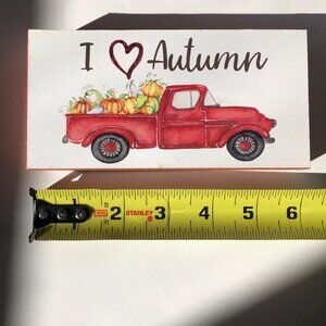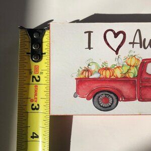 Wooden, Free-standing, Decor "I ❤️ Autumn" W/ truck & pumpkins, appx 3"Hx6"Lx1"D