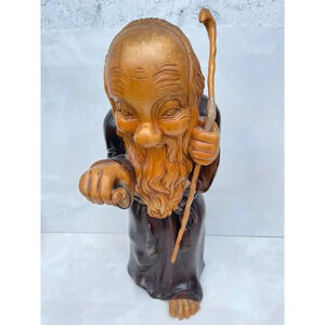 Wooden Hand Carved Monk Table Lamp Aldo Tura for Macabo Italy Midcentury 1950s