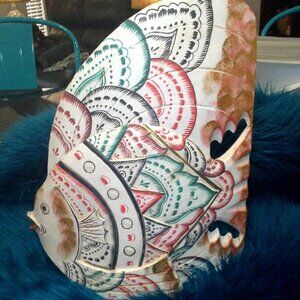 Wooden Handcarved Angel Fish, Beachcore, Carved Decor, Eclectic, Hand created. Colorful Angel Fish Carving; Made in Indonesia approx: 18" Length, 19" Height. No signs of use or wear; Beautiful condition.