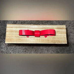 Hanging wooden wall shelf that can display trinkets, decor, or photos.
