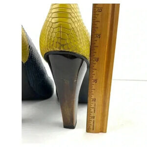 Wooden Heels Pumps Blue Yellow Snake Style 10 7 For All Mankind Women's Leather