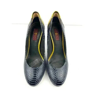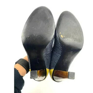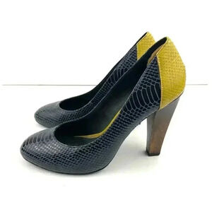 Wooden Heels Pumps Blue Yellow Snake Style 10 7 For All Mankind Women's Leather