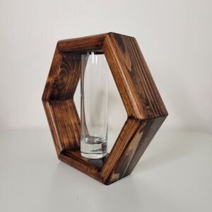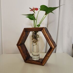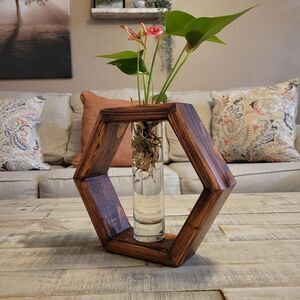 Wooden Hexagon Propagation Floral Vase Handmade Gift Stain in Red Oak
