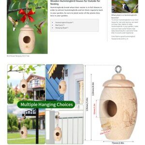 Lotkey: 1 pk - Hummingbird House, Wooden Hummingbird Houses for Outside for Nesting, Screwable Cover Hummingbird Houses with Red Ribbons,