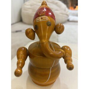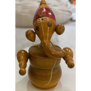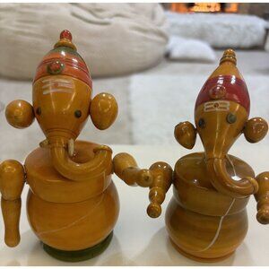 Wooden Indian Elephant Ganesha Set Of 2 Handcrafted Wooden Ganapathi