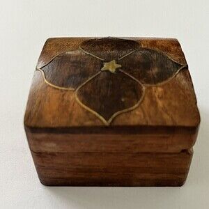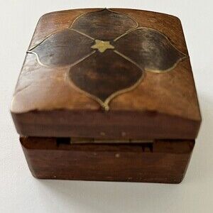 Wooden Inlay Flower Box Leaves Ring Holder Square Small Boho Trinket India Art