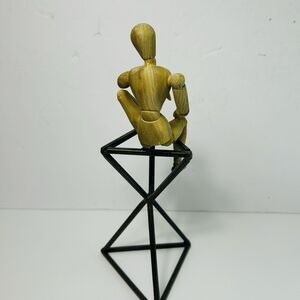 Wooden Jointed Artist Figure Sitting on Metal Stand Modern Figurine Decor 10"