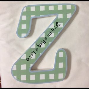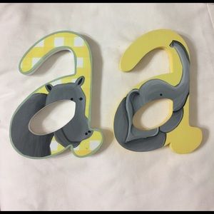 Decorate your child's nursery or bedroom with these hand painted wooden wall letters! These unique letters feature your child's favorite animals in a wide variety of colors and patterns. They look great hanging above beds, cribs, dressers or changing tables. Each letter comes w/ sawtooth hangers & are made from high quality/non toxic finishes. Approximate measurements: "Z" is 8" H, "Y "and "H" letters: 8 1/2" H, remaining letters measure approx 6 1/2" H. All letters are 1/2" in thickness.
