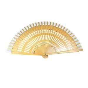 Wooden Light Tan- vintage hand fan white fabric detail- 16 inches extended