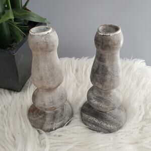 Wooden lightweight candlestick holder set. This set of 2 plates is in great condition (no stains, no chips, or damage and comes from a smoke and pet-free environment).