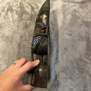 Gorgeous mask with amazing detailing in excellent condition, possibly vintage. It's about 15" long give or take an inch. Has strap on the back for hanging. Weighs a bit over a pound, not too heavy but substantial.