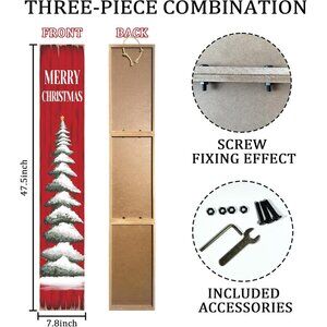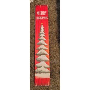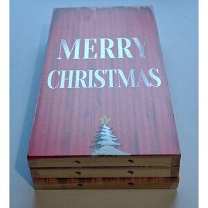 Wooden Merry Christmas Sign Red Snowy Tree Stackable Panels Holiday Cheer Decor