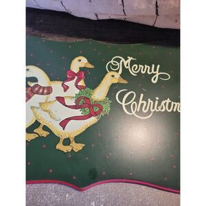 Wooden Merry Christmas goose duck mistletoe bow sign Decor Xmas figure