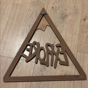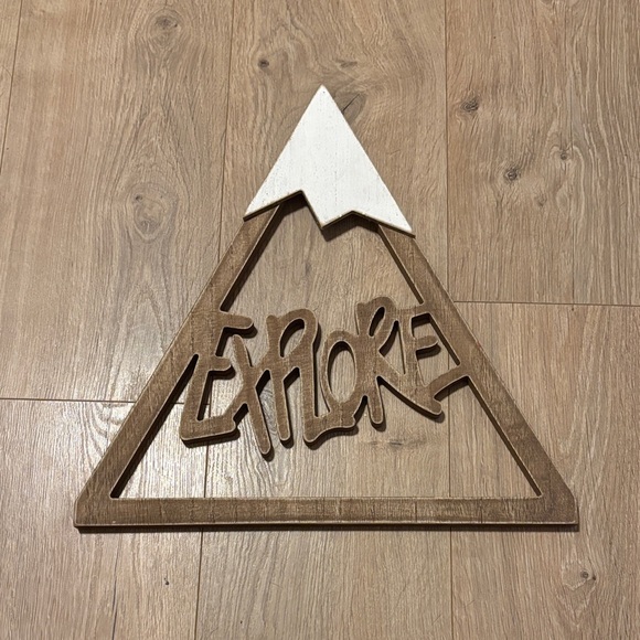 Decorative wooden mountain wall art featuring a white peak. Perfect for adding a rustic touch to any room. EXPLORE