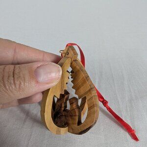 Wooden Nativity Scene Manger 3D Round Ornament Carved Vintage Unique Christmas