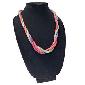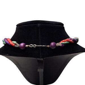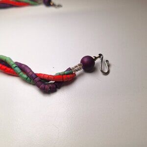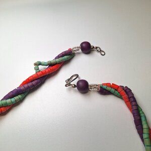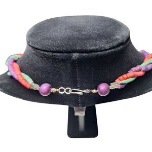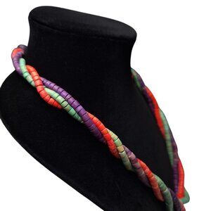 This exquisite vintage wooden necklace features a 24-inch design with handmade tube beads in a stunning triple strand arrangement, complete with a secure hook clasp for added elegance.