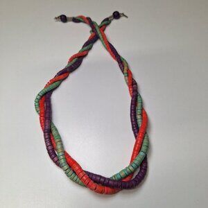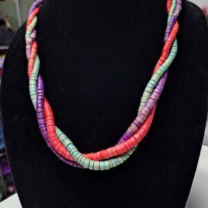 Wooden Necklace 24 Inch Vintage Handmade Tube Beads Triple Strand Hook Clasp