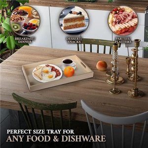 🧿MULTI-FUNCTION SERVING TRAY: Perfect size tray set for any food and dishware service; great for food, breakfast, dinner, drinks, cake, or any food serving trays; you can use them in family activities, parties, offices, bathrooms, dressing tables, etc.