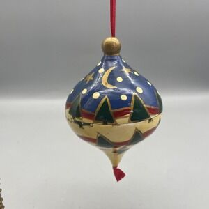 Add some festive charm to your Christmas tree with this wooden nesting ornaments The medium-sized round ornaments feature a multicolor village design and are made of high-quality wood. Hang them easily using the included hanging feature.