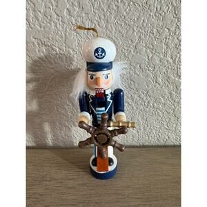 Wooden Nut Cracker Sea Captain 5" Tall Christmas Ornament