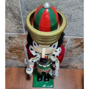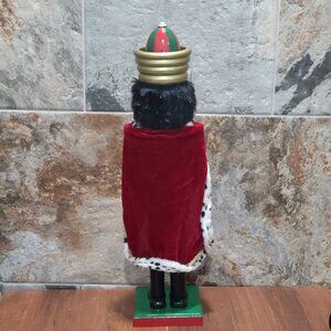 Wooden Nutcracker Red Velvet Cape 24 Inch Tall Green Base