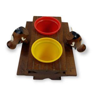 Wooden Picnic Bench Bull Salt and Pepper Condiment Stand Vintage 5 Piece Set