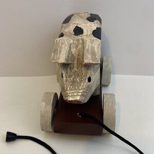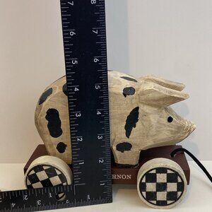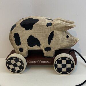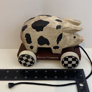Wooden Pig Pull Toy Kids Carved Folk Art Mount Vernon Estate Ossabaw Island Hog.
