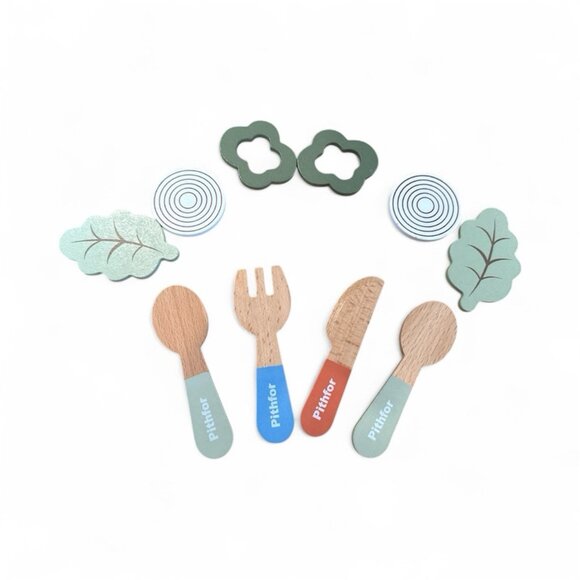 Wooden Play Pretend Food Replacement Pieces Pithfor Spoon Fork Knife Sandwich pieces