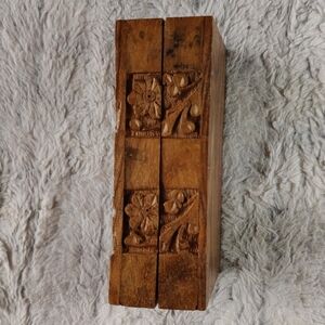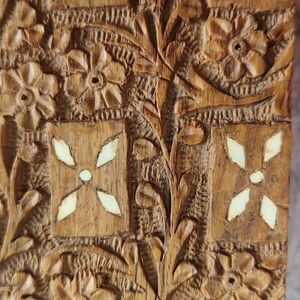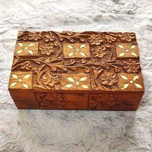 Wooden Rectangular Floral Engraved with a white Stone Flowers Box