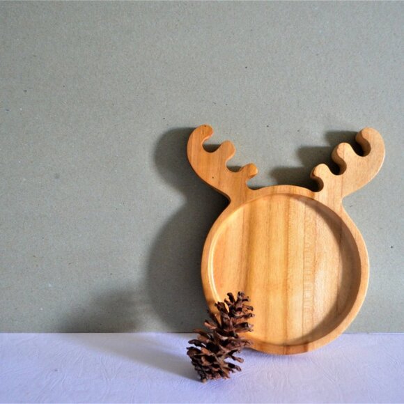 this Wooden Reindeer Shaped Plate Dish is a unique addition to any table setting.