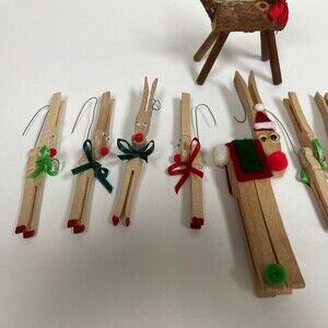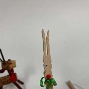 Wooden Reindeer Christmas Tree Ornaments Lot of 11