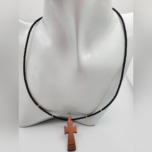 Wooden Religious cross mini seed beaded heishi spacer necklace N2302